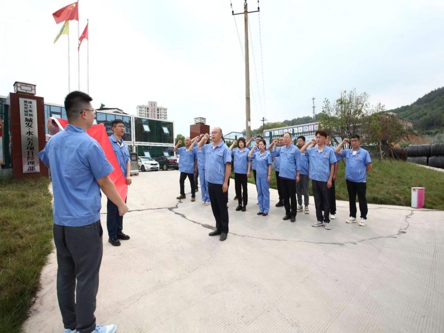 圖為市城發(fā)建設(shè)公司黨支部實施“黨小組+項目部”工作機制,開展“堡壘作用進工地 實干擔(dān)當(dāng)促發(fā)展”主題活動,城發(fā)·水云方項目黨小組正式揭牌。