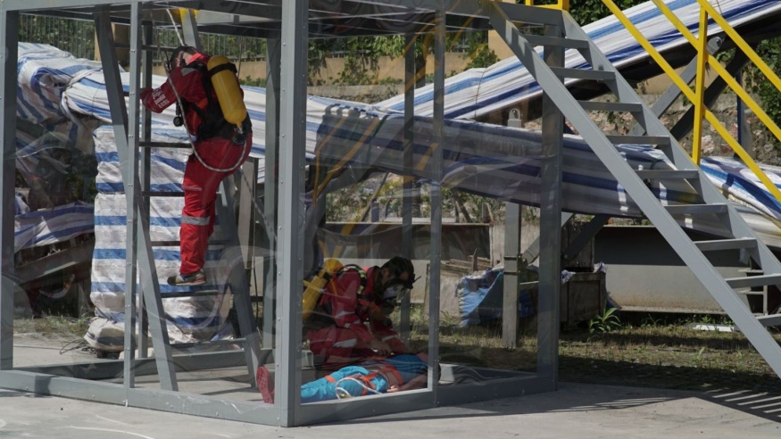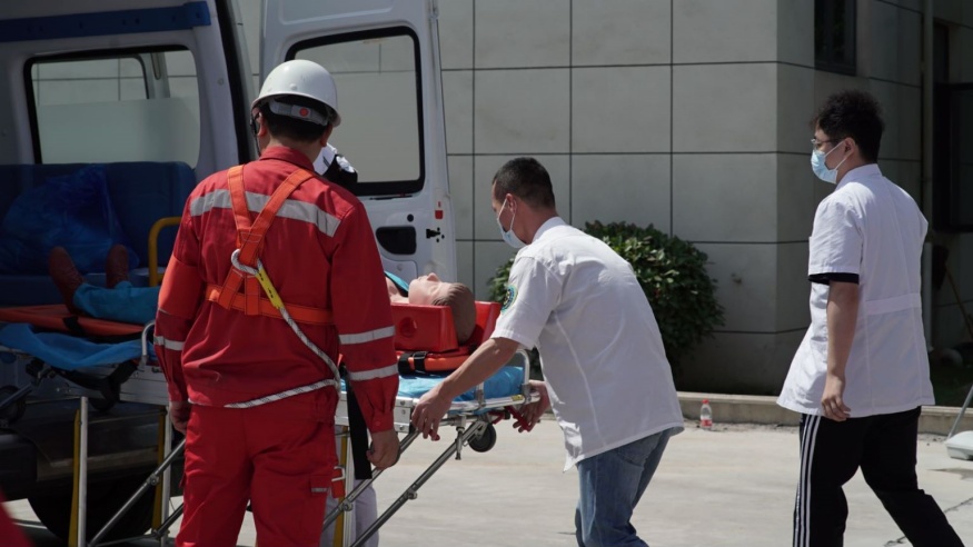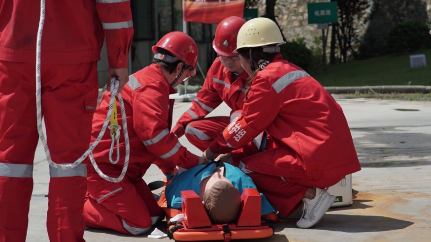 啟動(dòng)儀式后,黃石市經(jīng)開(kāi)投路面材料公司開(kāi)展應(yīng)急演練活動(dòng)演練以模擬有限空間作業(yè)環(huán)境下人員缺氧窒息暈倒為背景。事故發(fā)生后,安全保衛(wèi)組、事故救援組、醫(yī)療救護(hù)組、后勤保障組等各應(yīng)急小組迅速趕赴現(xiàn)場(chǎng),采取有效措施進(jìn)行事故應(yīng)急救援。演練全程用時(shí)僅15分鐘,演練過(guò)程緊張有序,程序規(guī)范、場(chǎng)景真實(shí)、反應(yīng)快速、效果良好。應(yīng)急演練活動(dòng)進(jìn)一步提升了建工集團(tuán)安全員處置突發(fā)事件的水平和應(yīng)急處置能力,為完善突發(fā)事件應(yīng)急預(yù)案提供了寶貴的實(shí)踐經(jīng)驗(yàn)。