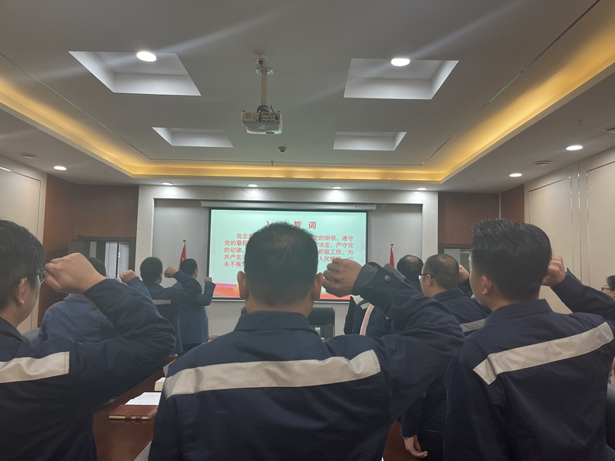 首先,洪登峰同志帶領全體黨員重溫入黨誓詞,大家面向黨旗,高舉右拳,用鏗鏘的誓詞,表達感黨恩、聽黨話、跟黨走的堅定決心和堅強信心。